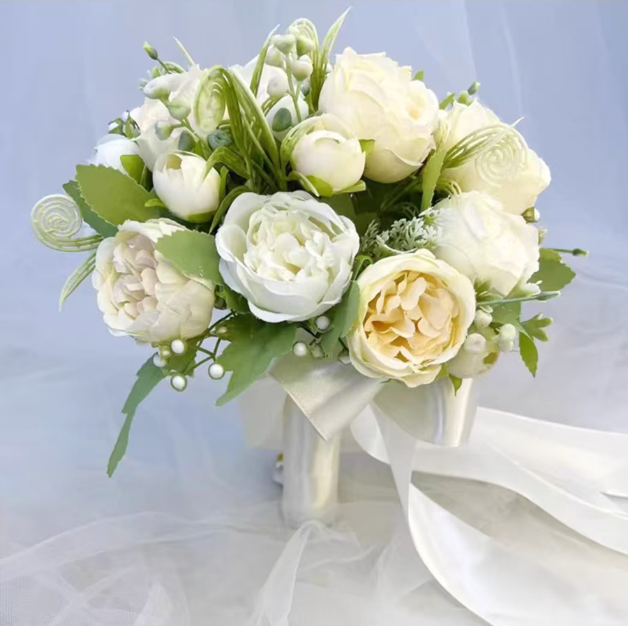 White Artificial Roses Flowers Wedding Bouquets